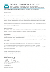 Notice Regarding Raw Material Supply Conditions and Price Revision